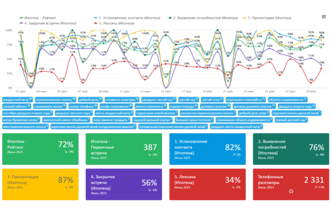 Транскрипция и анализ речи сотрудников со статистикой исполнения стандартов