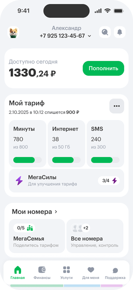 1. Войдите в приложение «МегаФон» или Личный кабинет.